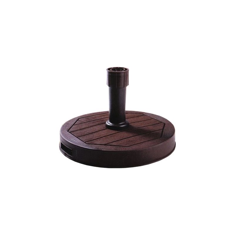 In plastica speciale, per ombrelloni con diametri da mm 32 a mm 50. Interno in cemento, peso kg 27