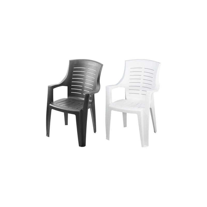 Sedia impilabile con schienale alto. In polipropilene. Dimensioni 56x61x91 cm. Peso 4,2 kg. Modello = colore