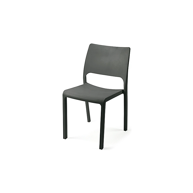 Sedia in polipropilene. Impilabile. Adatta sia per interni che per esterni. Dimensioni 52,5x46,5x82h cm. Colore antracite. Peso 4,7 kg.