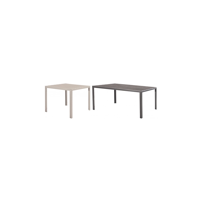 Tavolo con top in plastica HDPE effetto legno e struttura in metallo verniciato. Modello = colore/dimensioni cm