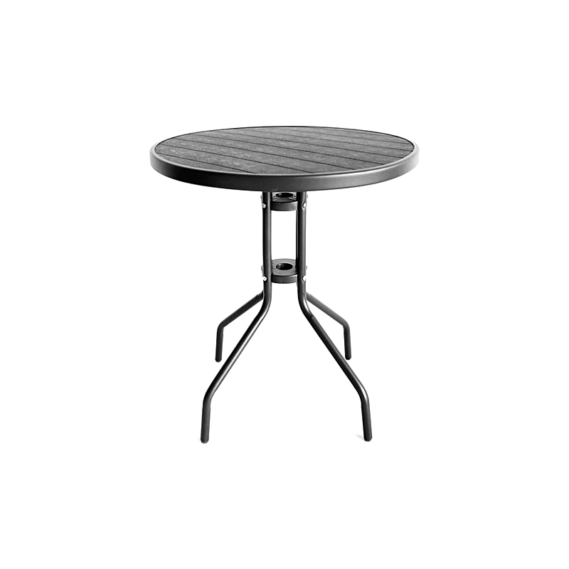 Tavolo con struttura in acciaio verniciata a polvere epossidica. Piano in vetro temperato (5 mm). Diametro 60 cm, altezza 70 cm. Colore antracite.