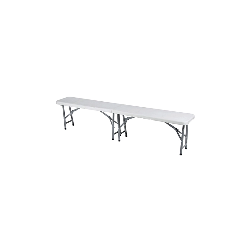Panca pieghevole con struttura in acciaio verniciato diametro 22 mm e piano in plastica HDPE. Portata massima 150/200 kg. Dimensioni aperta 183x28x44h cm. Modello = colore