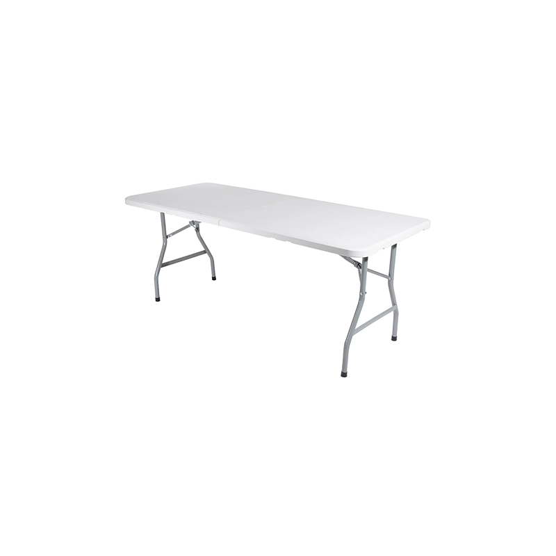 Tavolo pieghevole con struttura in acciaio verniciato diametro 28 mm e piano in plastica HDPE. Facilissimo da ripiegare e da trasportare grazie alla maniglia in tessuto con impugnatura. Portata massima 150/200 kg. Dimensioni aperto 180x70x74h cm. Dimensioni chiuso 92x9,5x72h cm. Modello = colore