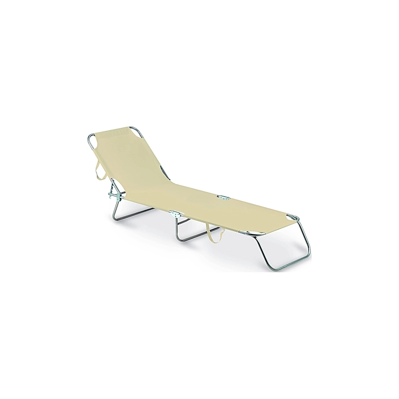 Struttura in acciaio verniciato. Schienale regolabile in 4 posizioni con cremagliera. Tessuto in PVC 600D. Dotato di 2 maniglie per il trasporto. Dimensioni 188x55x24h cm. Colore beige