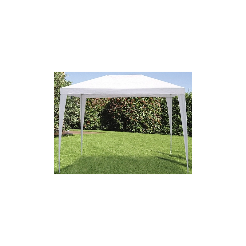 Gazebo con struttura in tubi di ferro diametro 19 mm e copertura in poliestere bianco PE da 105 gr/mq. Dimensioni 3x3 m. Altezza 2/2,5 m. Facilissimo da installare, leggero e versatile.