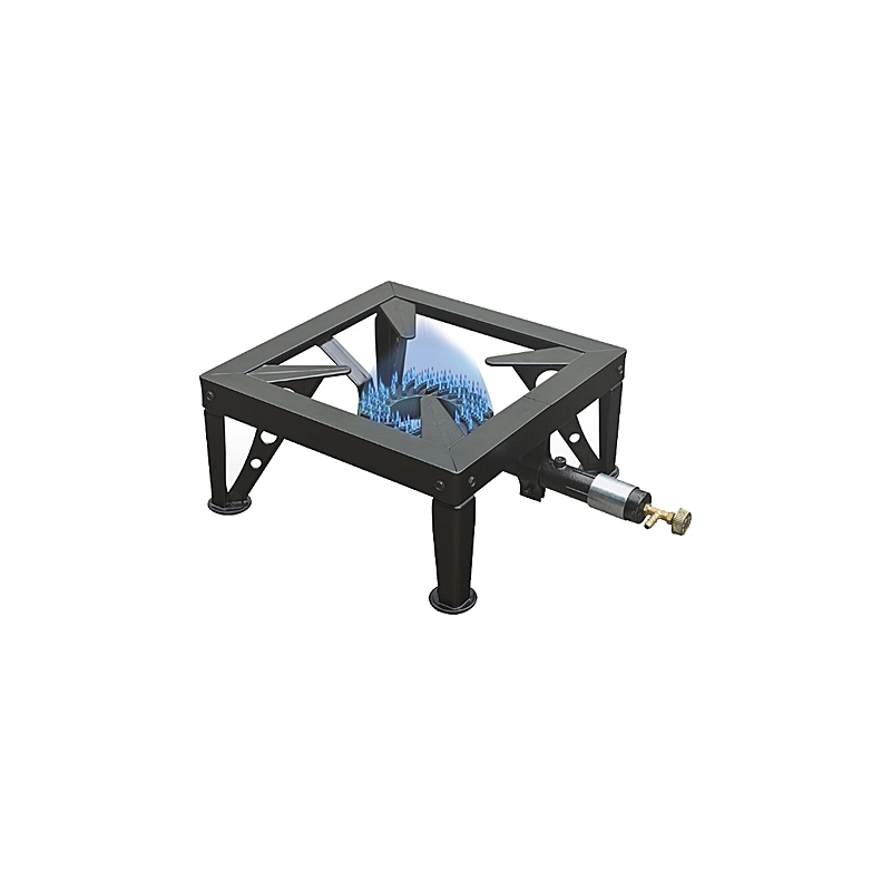 Fornellone pesante a 4 piedi in ghisa con rinforzi. Telaio 40x40 cm. Bruciatore da 170 mm. Potenza 7,5 kW. Peso 8,7 kg.