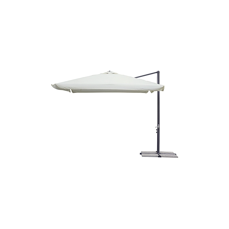 Ombrellone rettangolare cm 300x200, a braccio con palo in alluminio mm 45x65, con 6 stecche mm 12x22 e copertura colore ecru in poliestere da 180 gr/mq con antivento. Apertura a manovella. Base di appoggio a crociera per piastre da 50x50 cm.