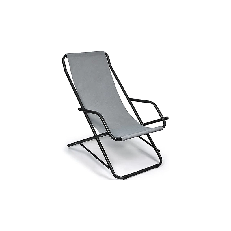 Sdraio basculante in acciaio con telo in textilene colore grigio. Misura aperto 101x63x85h cm. Made in Italy.