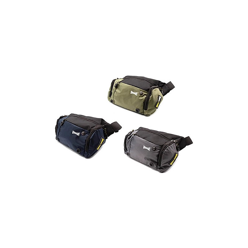 Marsupio in tessuto leggero e resistente con 5 scomparti e chiusure con zip. La cintura regolabile permette di indossarlo sia in vita che a tracolla. Misura 29x19,5 cm. Colori assortiti.