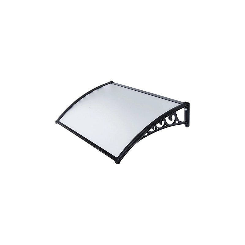 Pensilina con supporti in polipropilene rinforzato, profilo in alluminio frontale e sul retro. Copertura in policarbonato trasparente modulabile ed estensibile lateralmente. Modello = dimensioni cm
