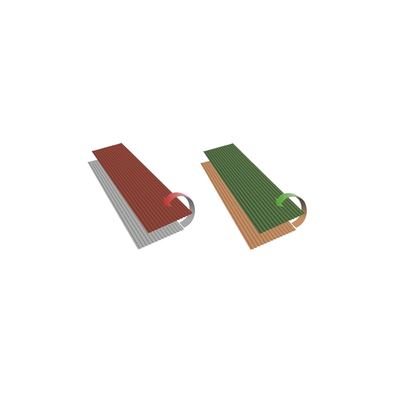 Lastra in lega polimerica con altissime prestazioni di resistenza termica e meccanica. Lati colorati in diverse finiture. Passo 76 mm. Sormonto 89 mm. Prodotto leggero, facile da trasportare, semplice da installare e puo' essere posato per coperture o tamponamento verticale. Dimensione 2000x1077 mm. Modello = colore