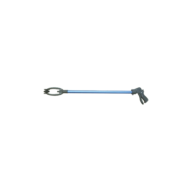 Pinza prensile in alluminio anodizzato e plastica. Presa in morbida gomma con apertura regolabile. Colore azzurro. Lunghezza totale 87 cm, lunghezza bastone 70 cm