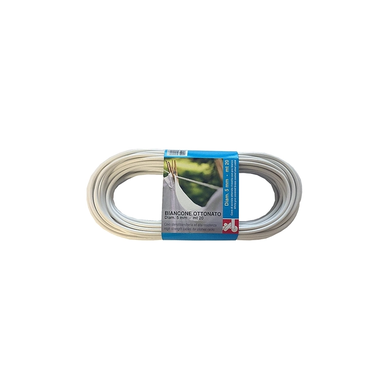 Con anima in acciaio ottonato rivestita in PVC bianco. Diametro 5 mm. Lunghezza 20 mt.