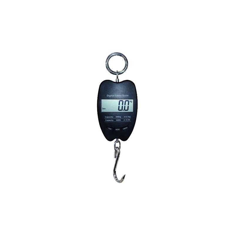 Corpo in ABS con anello e gancio in acciaio. Scala di misurazione chilogrammi-libbre con divisione di pesata pari a 100 gr fino a 200 kg. Funziona con 2 batterie CR2032 incluse. Portata kg 200