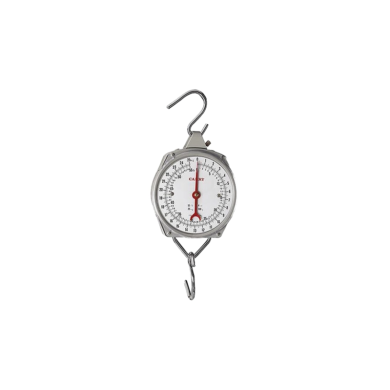 Realizzata in alluminio, con doppio gancio in acciaio. Dotata di vite per la regolazione della tara. Modello = Portata kg/suddivisione scala gr