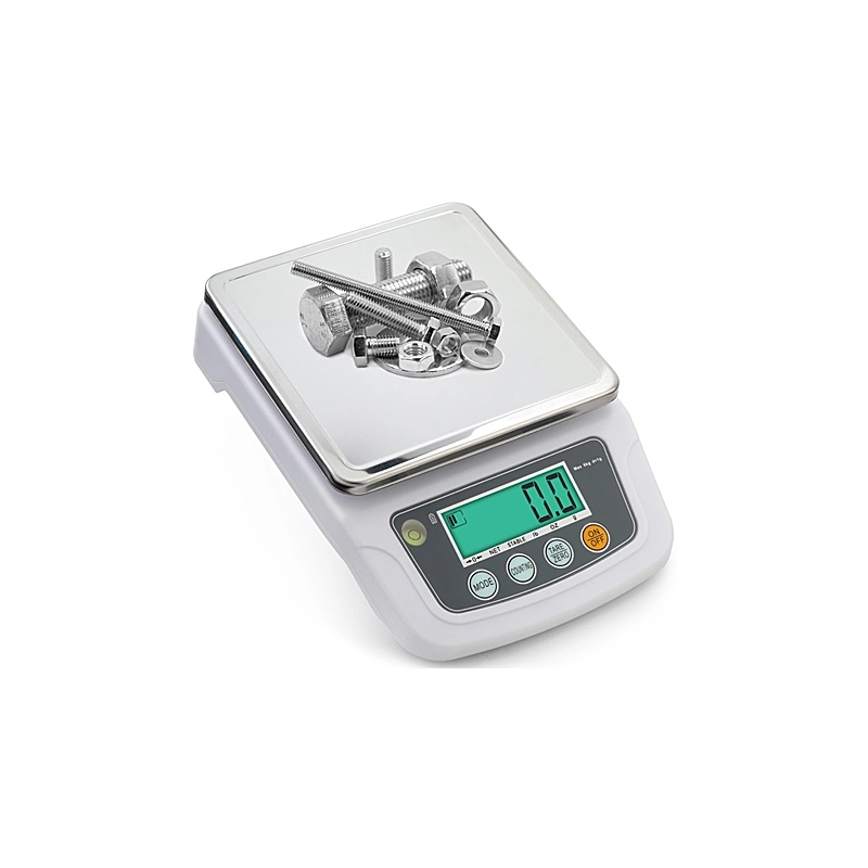 Funzione conta-pezzi: impostando il peso unitario calcola il numero di pezzi complessivo. Display LCD. Funzione tara, azzeramento automatico e funzione di spegnimento. Portata 6 kg. Divisione 1 g. Dimensioni piatto 15x15. Batteria al Litio ricaricabile 3,7V 1,5 Ah (inclusa).