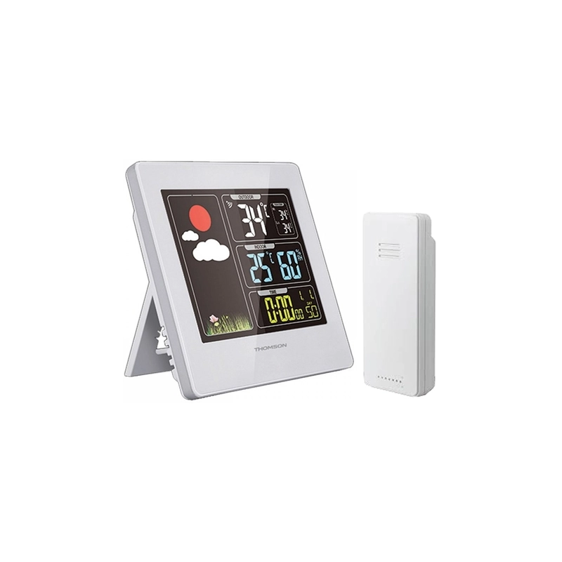 Stazione meteo wireless con radiosveglia, con sensore per esterno portata 60 mt. Display a colori. Temperatura minima-massima, igrometro. Funzioni data e ora, sveglia, visualizzazione della temperatura in Celsius o Fahrenheit. Dimensione: 12x12x2,45 cm, funziona con batterie 2xLR3 (non incluse).