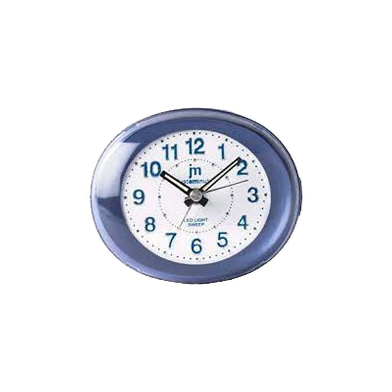 Sveglia al quarzo analogica con crescendo, luce (illuminazione dei numeri) e snooze (ripetizione dopo 5 minuti). Movimento continuo silenzioso. Dimensioni 9x7,5x5 cm. Colori assortiti: bianco, grigio, blu e nero.