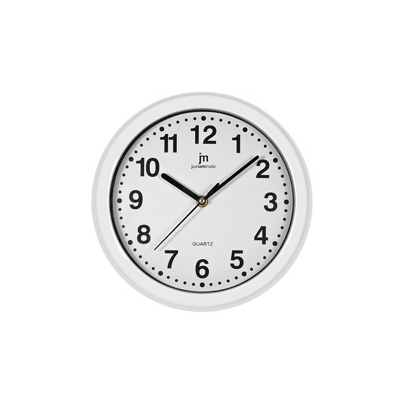 Orologio da parete in ABS. Movimento continuo silenzioso. Diametro 25 cm. Colori assortiti, fondo bianco, cornice bianca, grigia o nera.