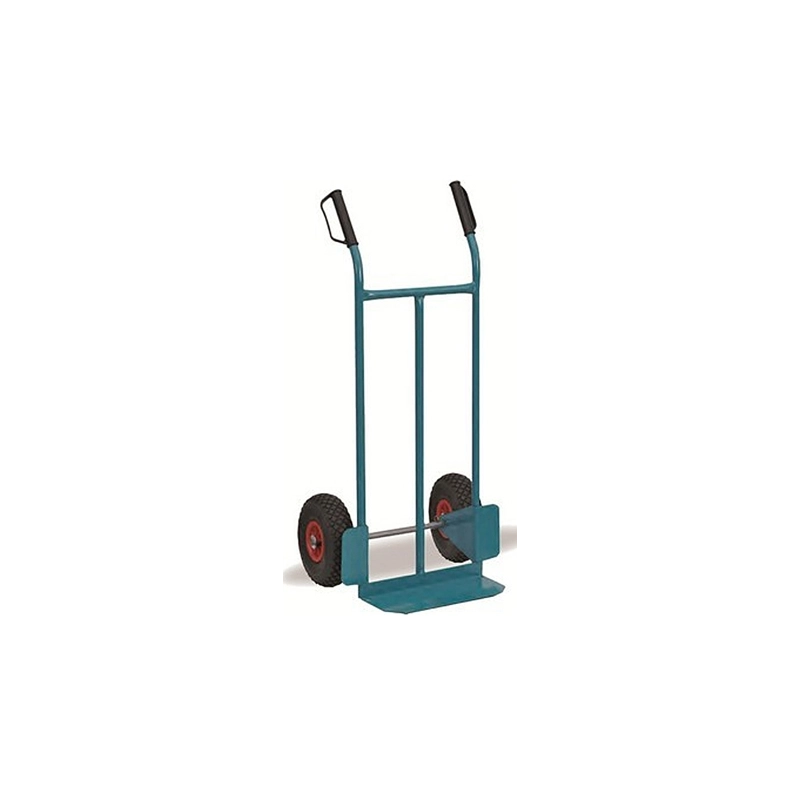 Carrello per casse e scatole. Ruote pneumatiche con cuscinetti a rulli diametro 260x85 mm. Tubolari in acciaio da mm 25x1,5 spessore. Portata 200 kg. Peso kg 7,2.