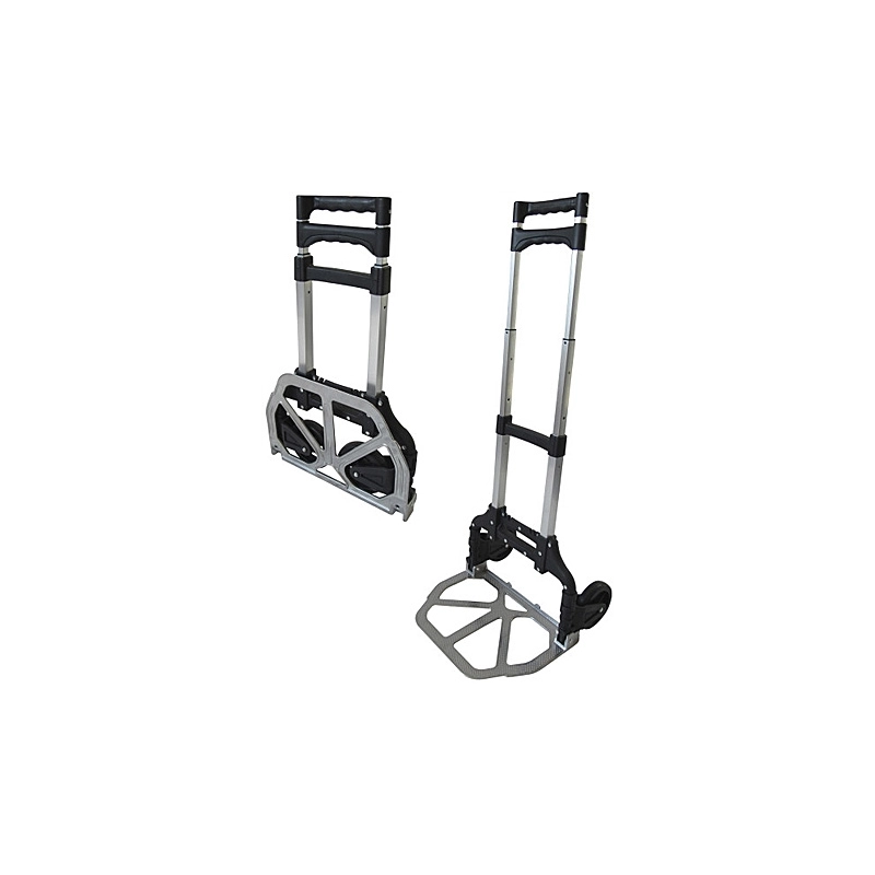 Carrello pieghevole con struttura in acciaio e pala in alluminio. Estremamente compatto. Portata 70 kg. Misura aperto 99x38x39 cm.