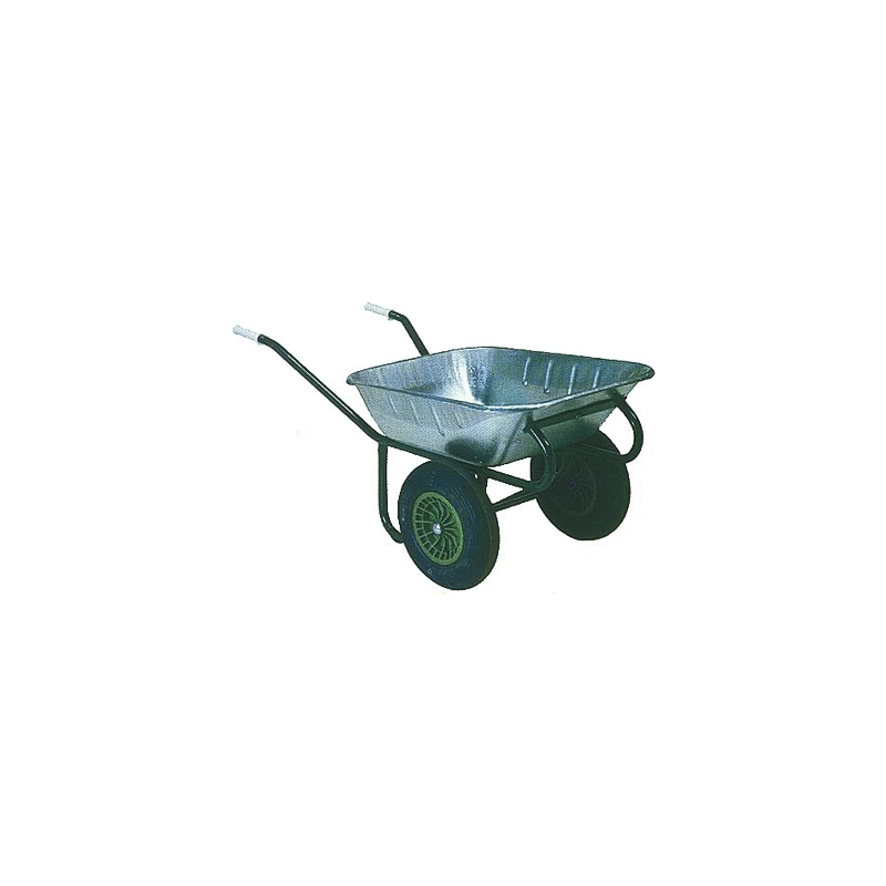 Telaio tubolare in acciaio verniciato. Asse ruota cm 56. Ruote mm 400x100 con pneumatici rinforzati a 2 tele e mozzi su cuscinetti. Volume l 90