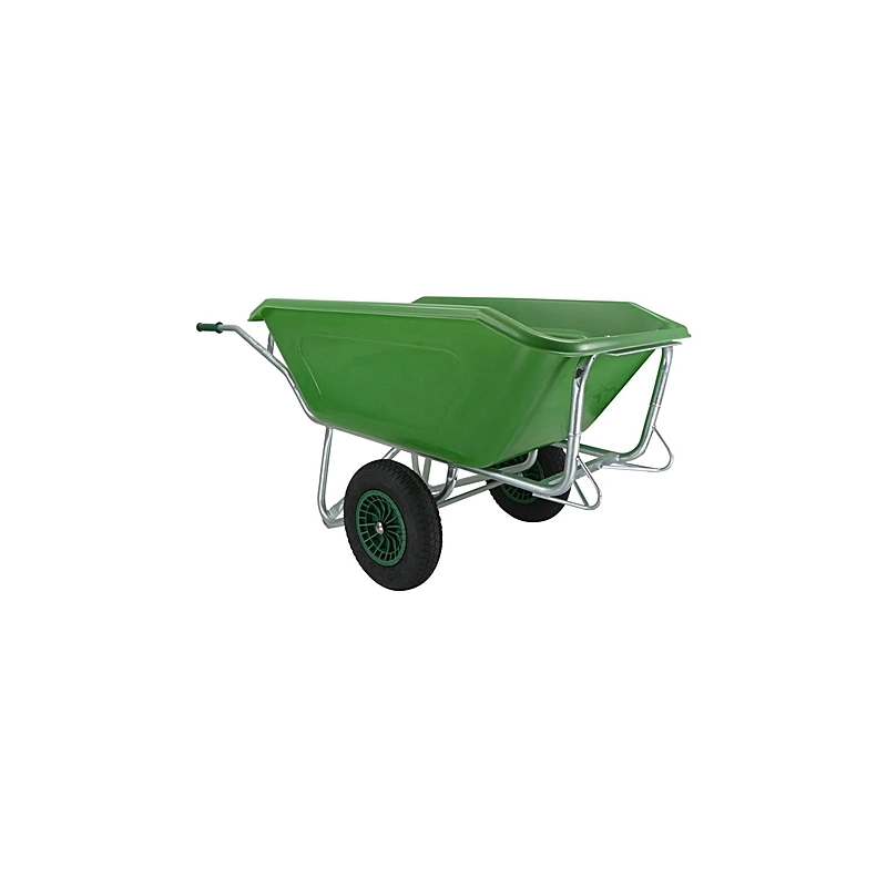 Telaio tubolare in acciaio zincato a caldo diametro 30 mm. Vasca in plastica MDPE verde. Ruote mm 400x100. Dimensioni 194x87x87 cm. Portata 350 lt. Peso 30,4 kg.