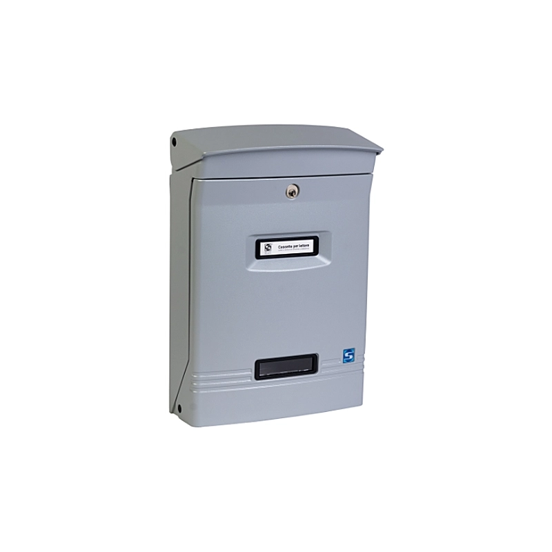 In alluminio con impostazione dall'alto. Porta ritiro con apertura a ribalta. Dimensioni mm 258x375x85-120. Apertura imbucalettere mm 230x23. Modello = finitura