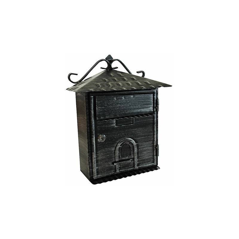 In ferro battuto di colore nero argento. Dimensioni mm 220x105x340h