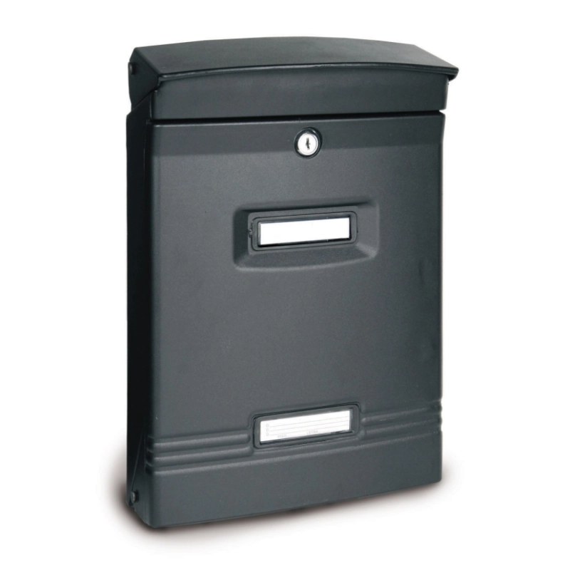 Formato rivista, con tetto snodato e impostazione dall'alto. Prelievo frontale. Dimensioni mm.270x400x75. Materiale: alluminio verniciato. Colore ghisa