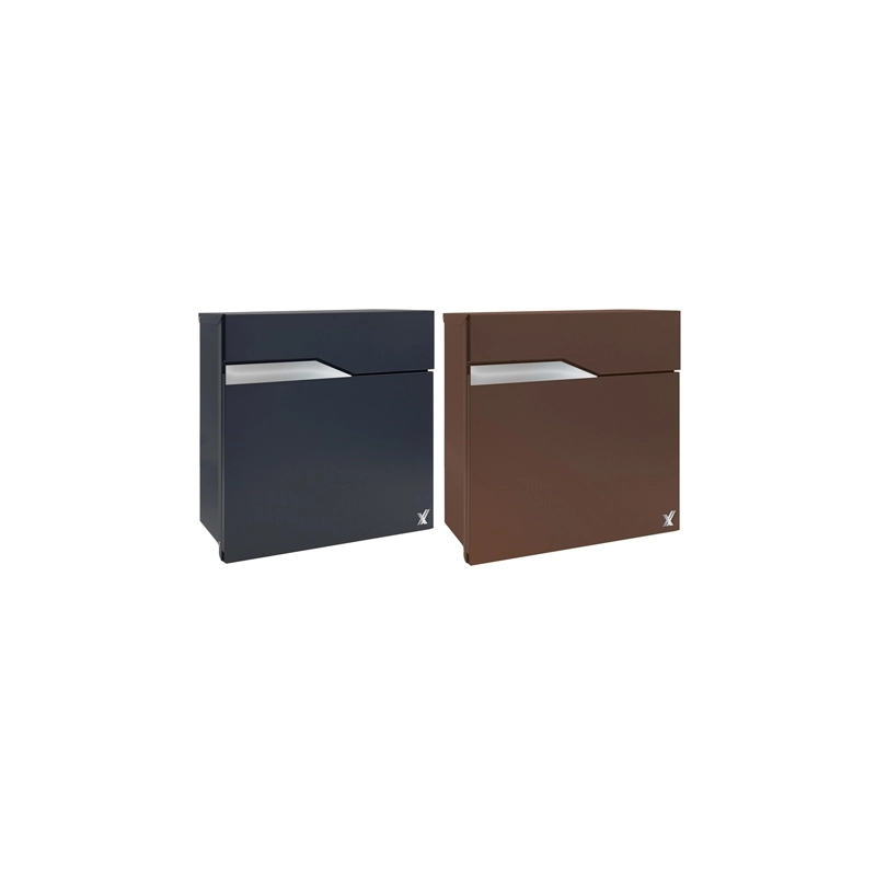 Cassetta per esterni di grandi dimensioni dotata di tetto parapioggia ammortizzato, con introduzione dall'alto e prelievo frontale, da parete o cancellata. Portanome adesivo in acciaio inox. Dimensioni mm 370x370x110. In acciaio zincato e verniciato a polveri. Modello = colore