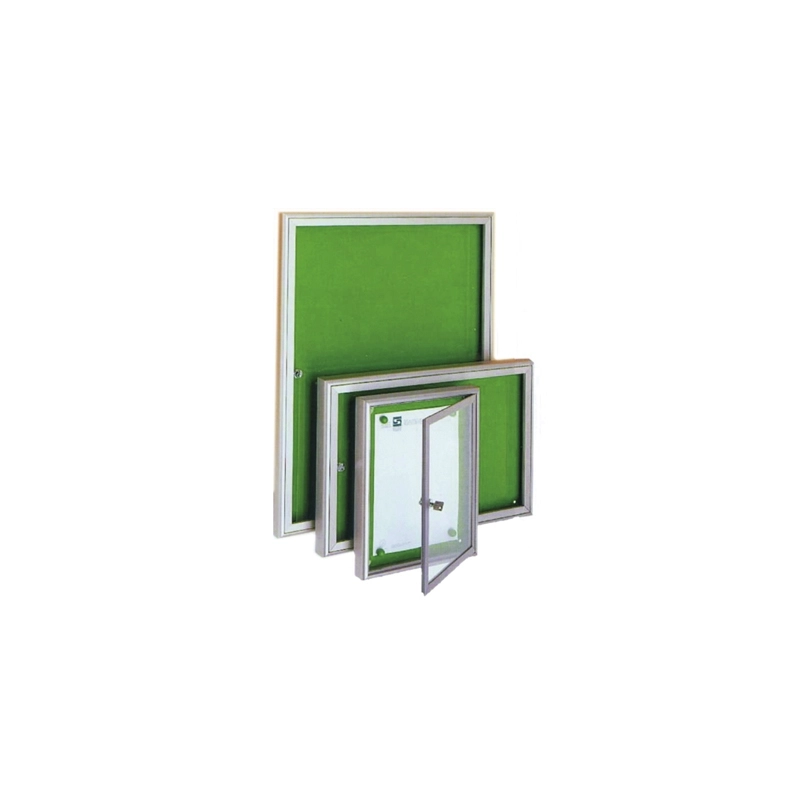 In alluminio anodizzato, con porta in plexiglas trasparente. Serratura a cilindro con due chiavi. Profondita' 4 cm. Modello = numero magneti/dimensioni cm (LxH)/colore cornice/colore fondo
