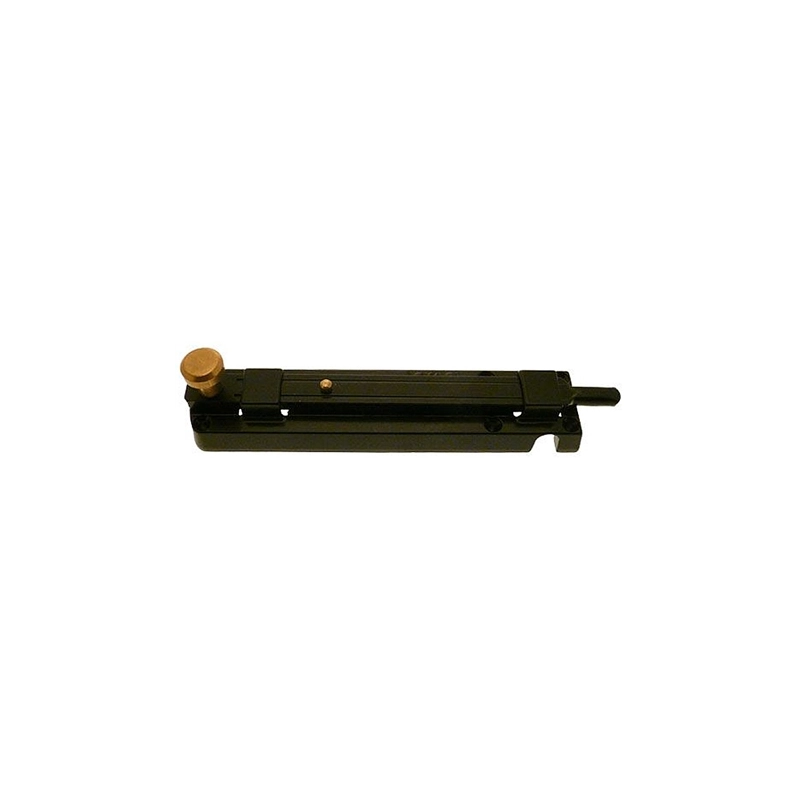 Catenaccio orizzontale lunghezza cm 23. Applicabile a scuri e portoncini ad 1 anta. Fissaggio sopra l'asta della spagnoletta. Verniciato nero.