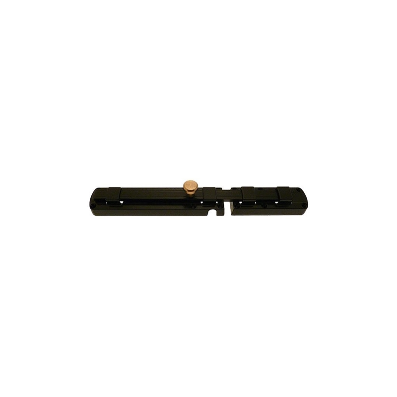 Catenaccio orizzontale lunghezza cm 30. Applicabile a scuri e portoncini ad 2 ante. Fissaggio sopra l'asta della spagnoletta. Verniciato nero.