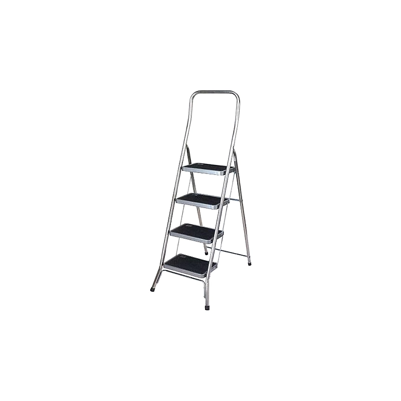 Sgabello con tubolare in alluminio diametro 28 mm anteriore e diametro 25 mm posteriore. Gradini in acciaio ricoperti in gomma antiscivolo nera 37x25 cm. Portata 150 kg. Certificato EN14183. Chiusura con stopper di sicurezza. Made in Italy. Modello = numero gradini/altezza di lavoro utile m/peso kg
