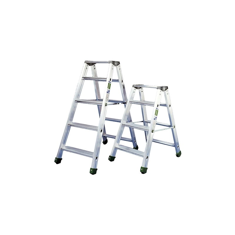 Montanti scatolati da mm 24x60. Cerniere in monoblocco di nylon. Compassi in acciaio antichiusura e antidivaricamento. Portata kg 150. Modello = numero gradini/altezza pianetto cm