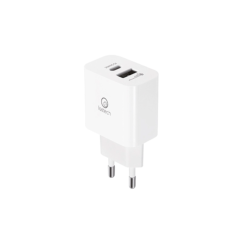Caricatore elettronico rapido con doppia uscita: USB - TYPE-C. Si adatta alle caratteriche di ricarica del dispositivo. USB: 5V4A/9V2A/12V1.5A. TYPE-C: 5V3.1A/9V2A/12V1.5A