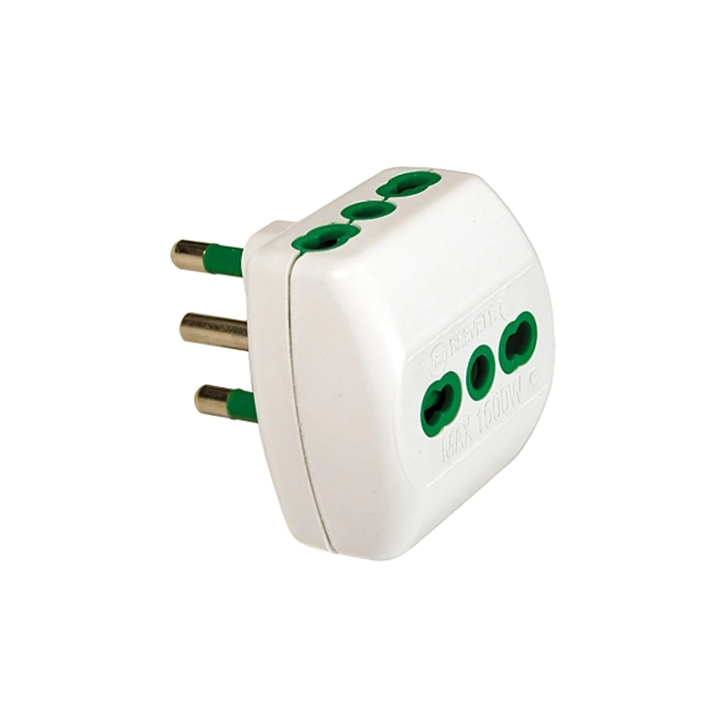 Adattatore spina 2P+T 16A - 3 Prese 2P+T 16A bipasso. Colore bianco. Modello = art. Fanton/confezionamento