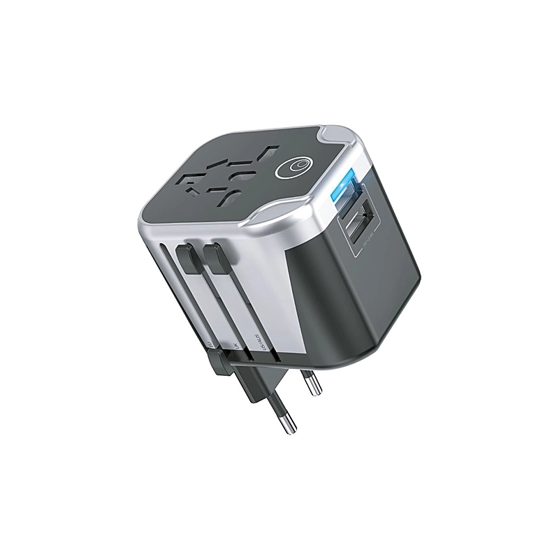 Adattatore da viaggio in policarbonato ignifugo. Potenza 12 Watt. Con doppia uscita USB. Ricarica fino a 2 dispositivi contemporaneamente, compatibile con la maggior parte dei dispositivi digitali ricaricabili tramite USB