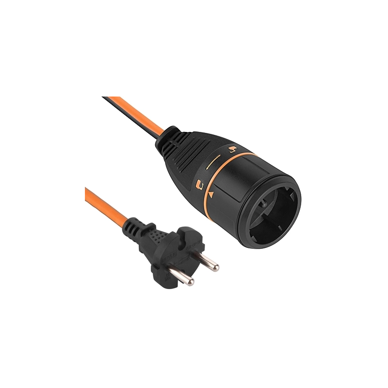Prolunga lineare con presa cablabile Electralock Schuko dotata di meccanismo di blocco che impedisce disconnessioni accidentali della spina. Sezione cavo mm2 2x1,5. Lunghezza cavo 20 mt.
