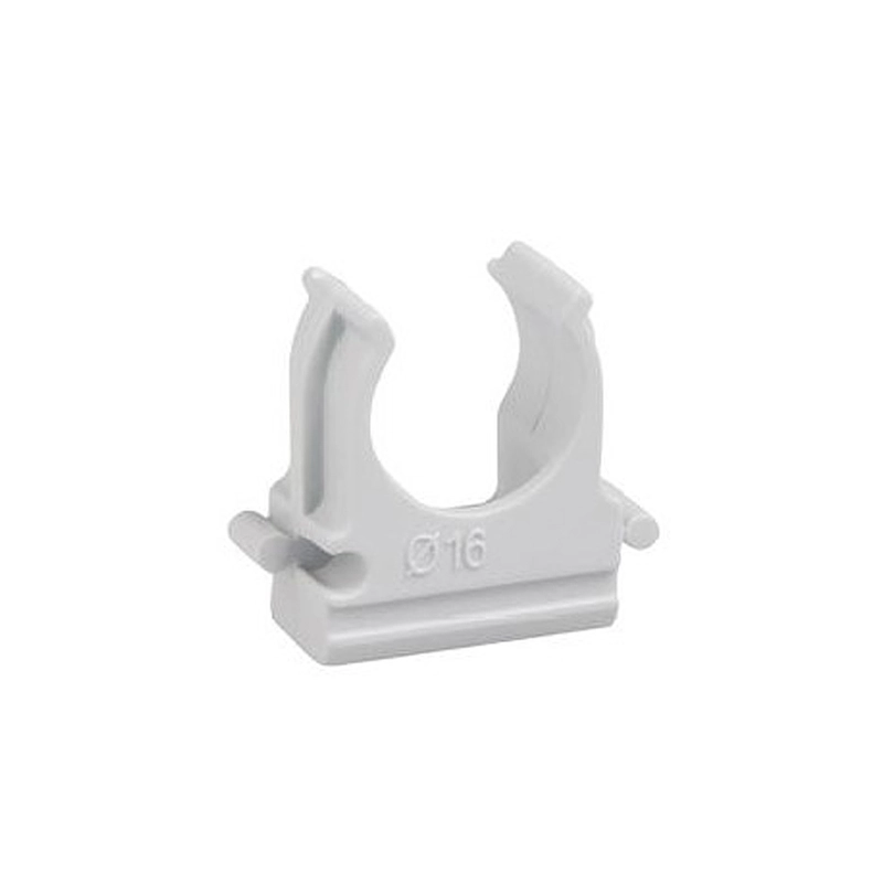 Supporto a scatto per fissaggio a muro. Colore bianco. In blister da 10 pz. Modello = per tubi diametro mm