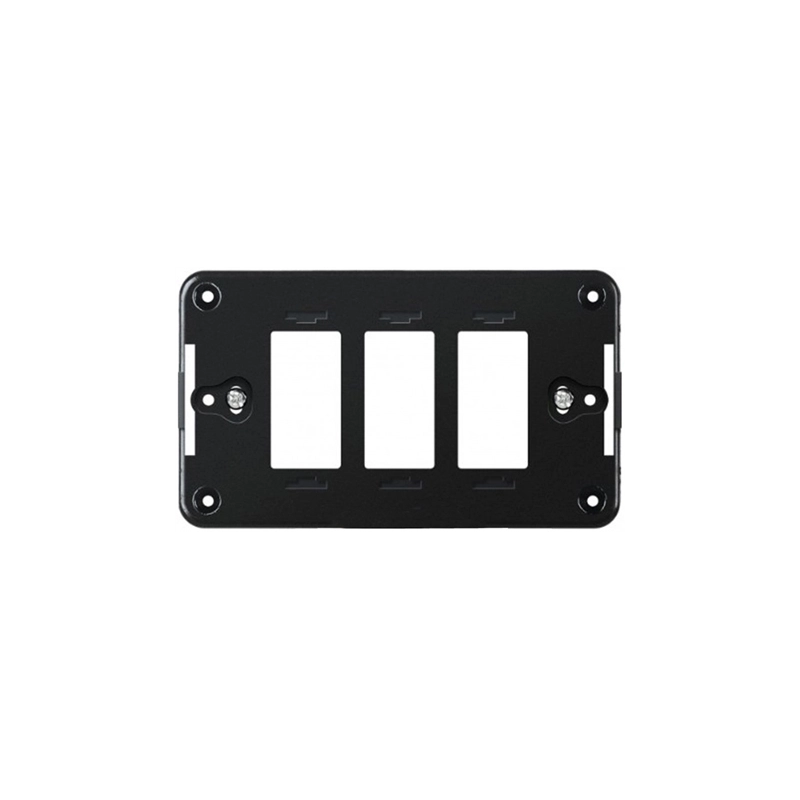 Supporto 3 posti per placche civili in policarbonato. Colore nero. In blister.