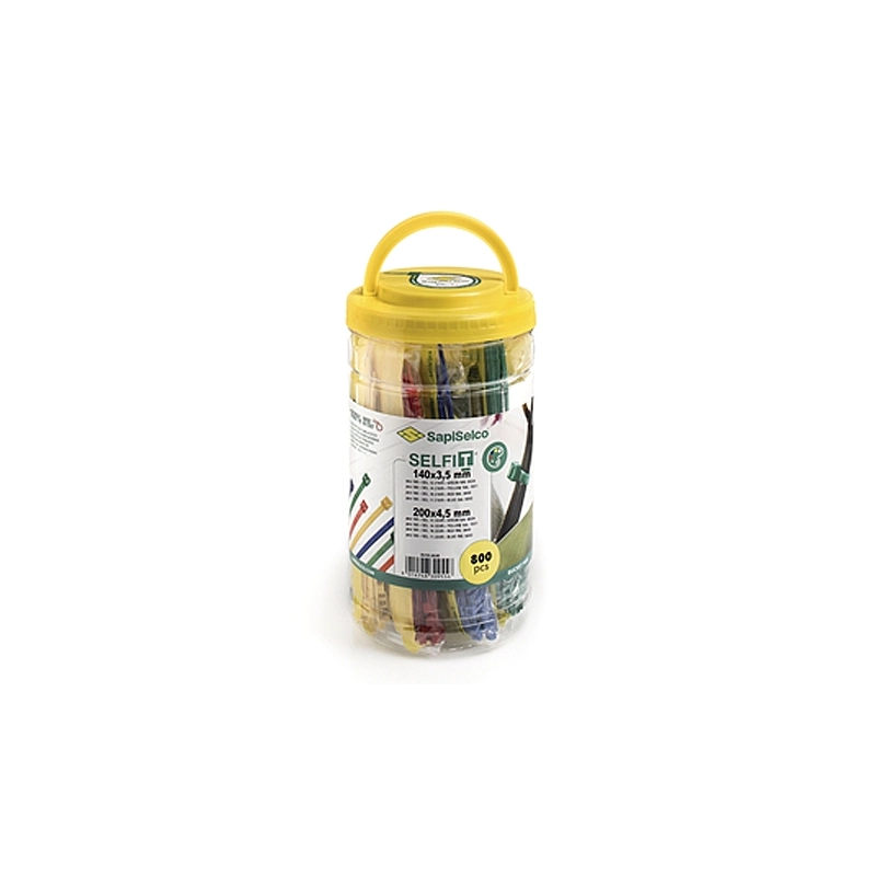 Box 800 pezzi fascette in 2 misure (140x3,5 mm e 200x4,5 mm) per 4 colori assortiti.