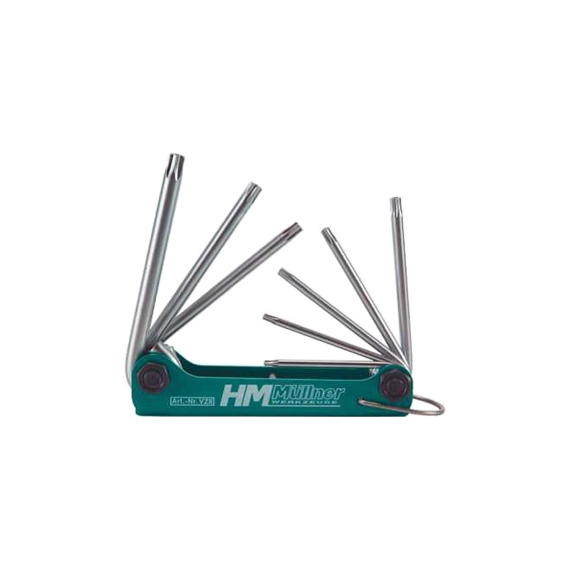 Serie 9 pz. chiavi Torx. In acciaio al cromo vanadio. Fornite con supporto in metallo pieghevole. Misure assortimento: TXB9 / TXB10 / TXB15 / TXB20 / TXB25 / TXB27 / TXB30 / TXB40