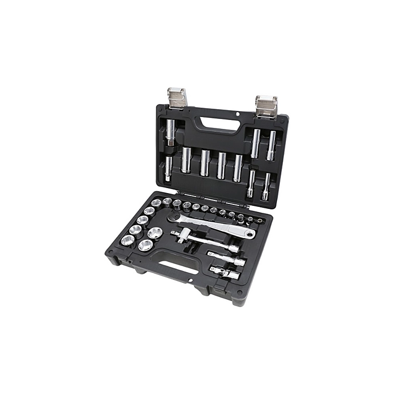 Assortimento di 28 chiavi a bussola esagonali e 5 accessori. In cassetta di plastica.