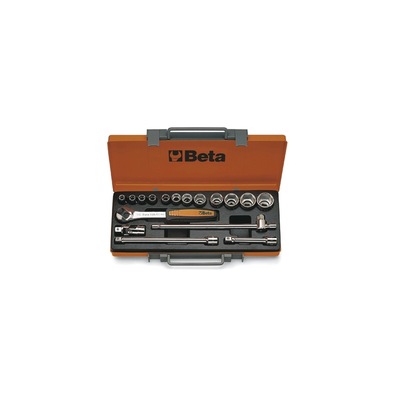 In cassetta di lamiera con 12 chiavi a bussola da mm. 10 a 22 e 5 accessori.