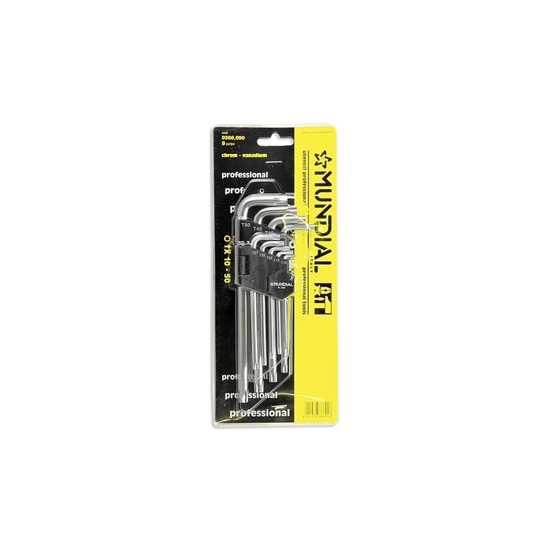 Serie 9 pezzi di misure T10, T15, T20, T25, T27, T30, T40, T45, T50. Con clip in plastica.