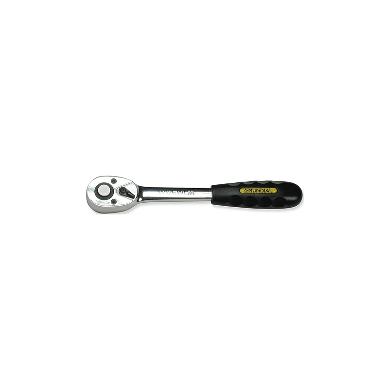 Cricchetto reversibile da 1/2" con sgancio rapido. In acciaio al cromo vanadio, finitura cromata. Impugnatura plasticata. 72 denti. Lunghezza 254 mm.