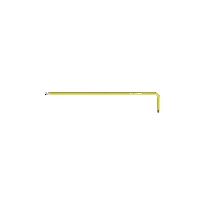 Chiavi maschio esagonali lunghe piegate con punta sferica, colorate. Verniciatura a polvere con colore abbinato alla grandezza. Modello = misura mm