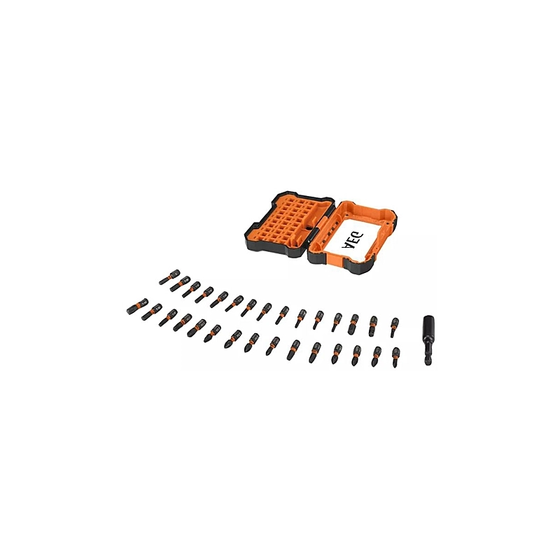 Set composto da 30 bits da 25 mm: PH1, 3xPH2, 2xPH3, PZ1, 3xPZ2, 2xPZ3, 3xT15, 4xT20, 4xT25, 2xT30, TX40, HEX3, HEX4, HEX5, HEX6. Incluso 1 portabits magnetico da 60 mm.